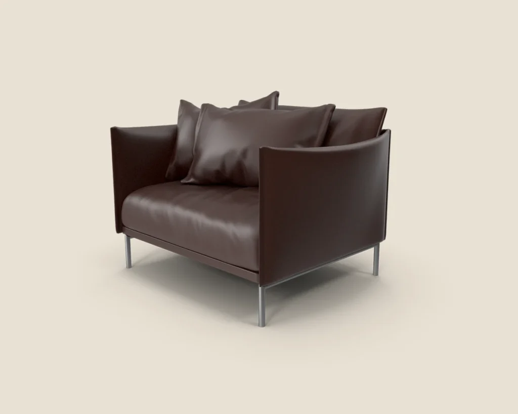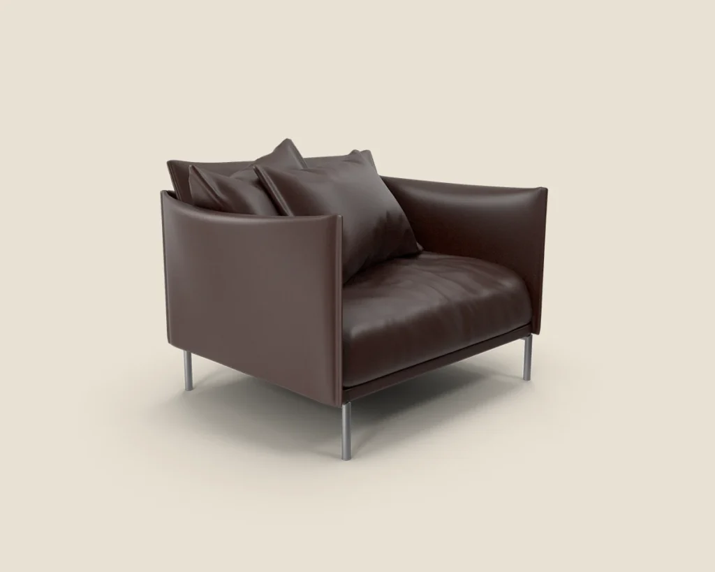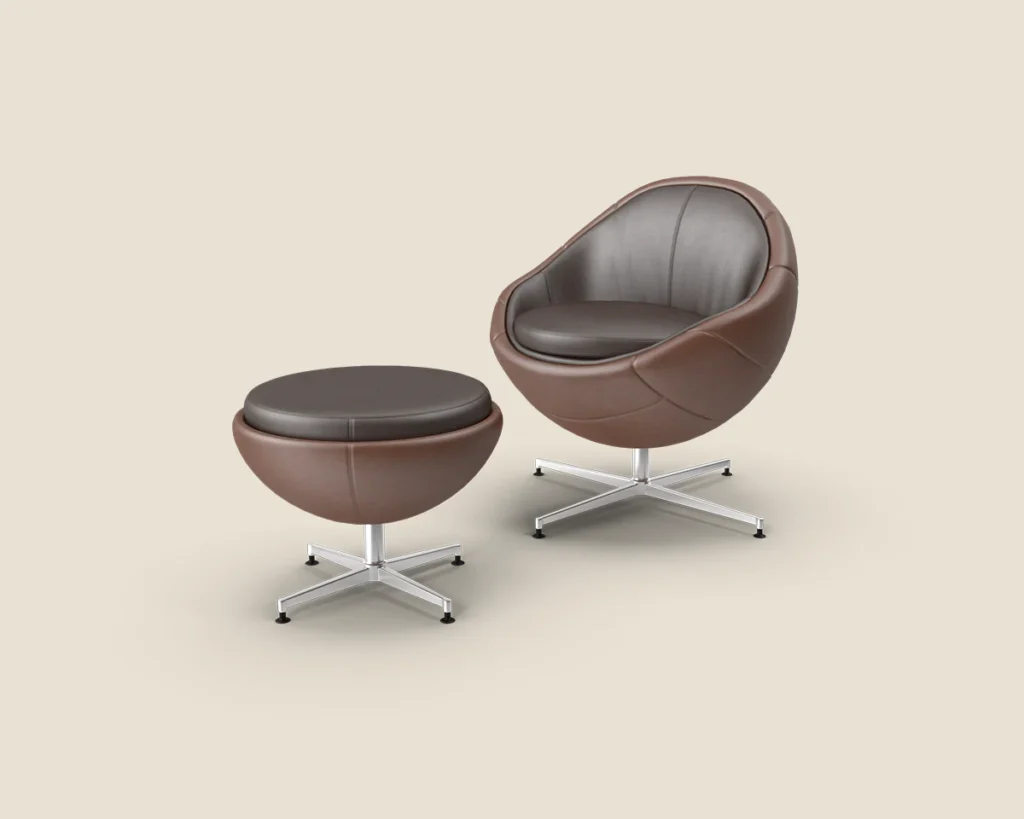 The Aero Lounge chair stands out with its modern and minimalist design, offering comfort and style with a durable metal frame and high-quality leather upholstery.
