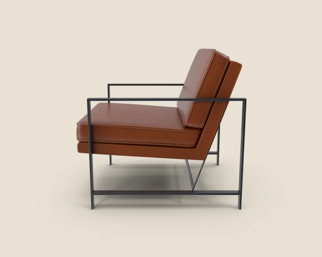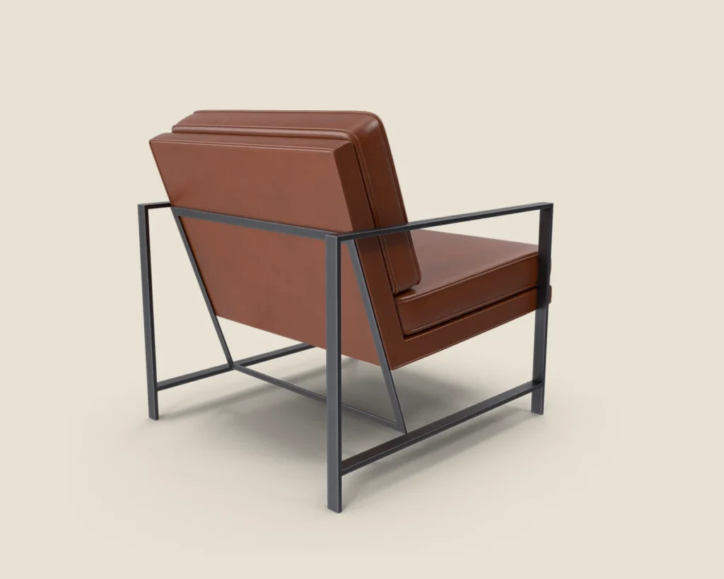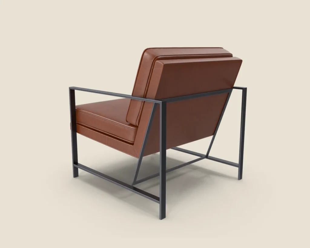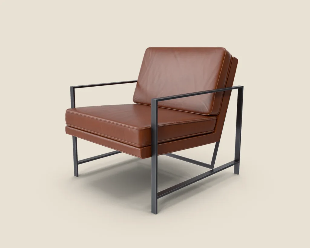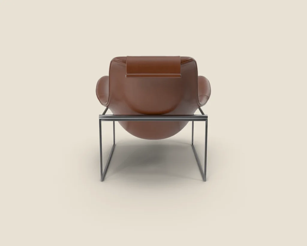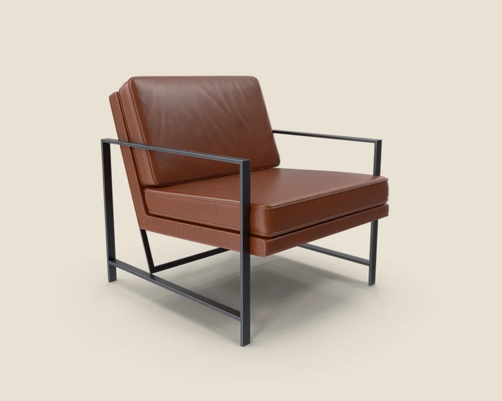 A stylish and comfortable lounge chair with a sleek metal frame and premium leather upholstery. Ideal for modern spaces