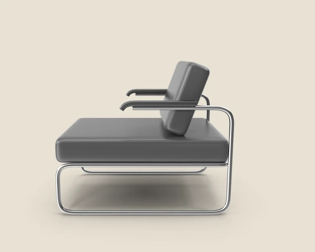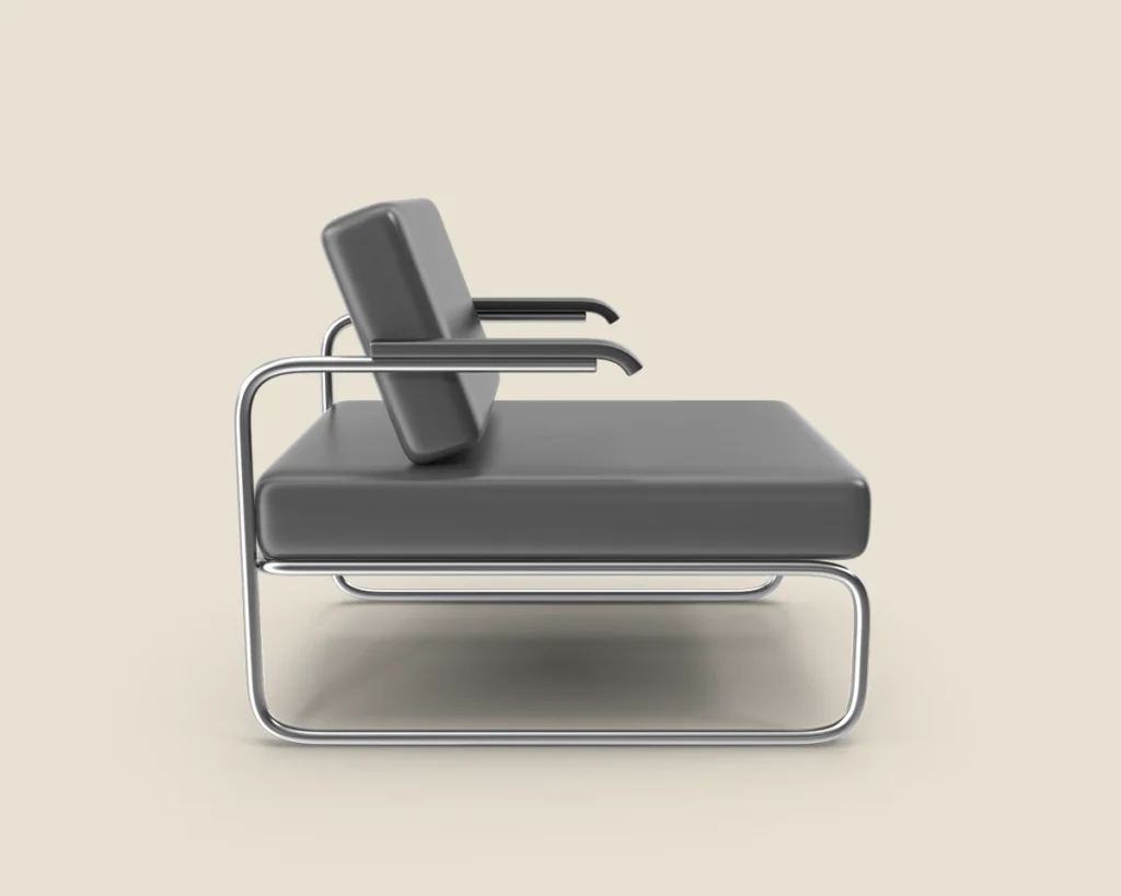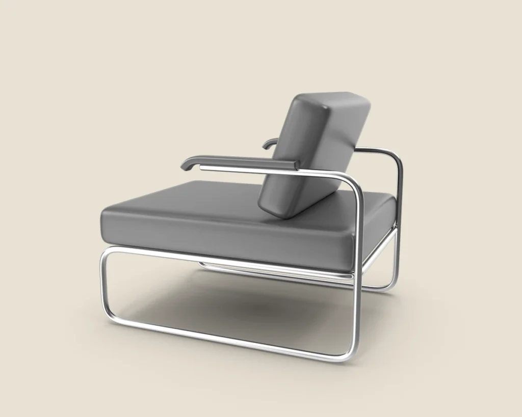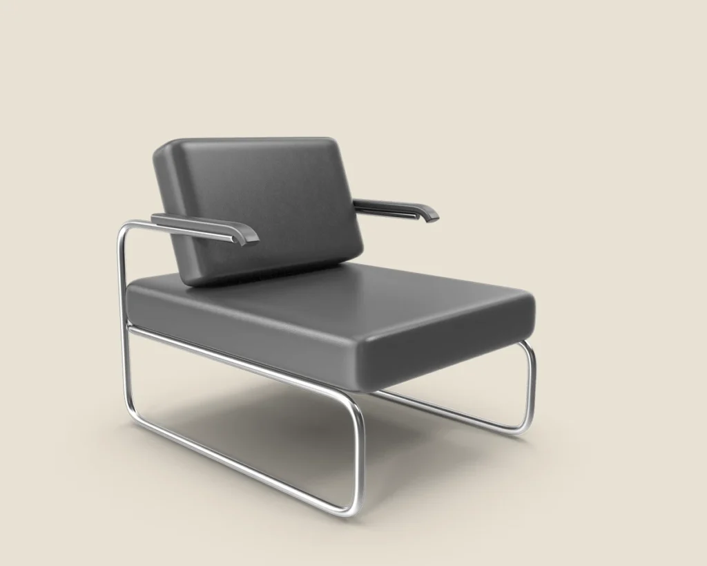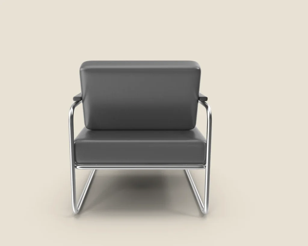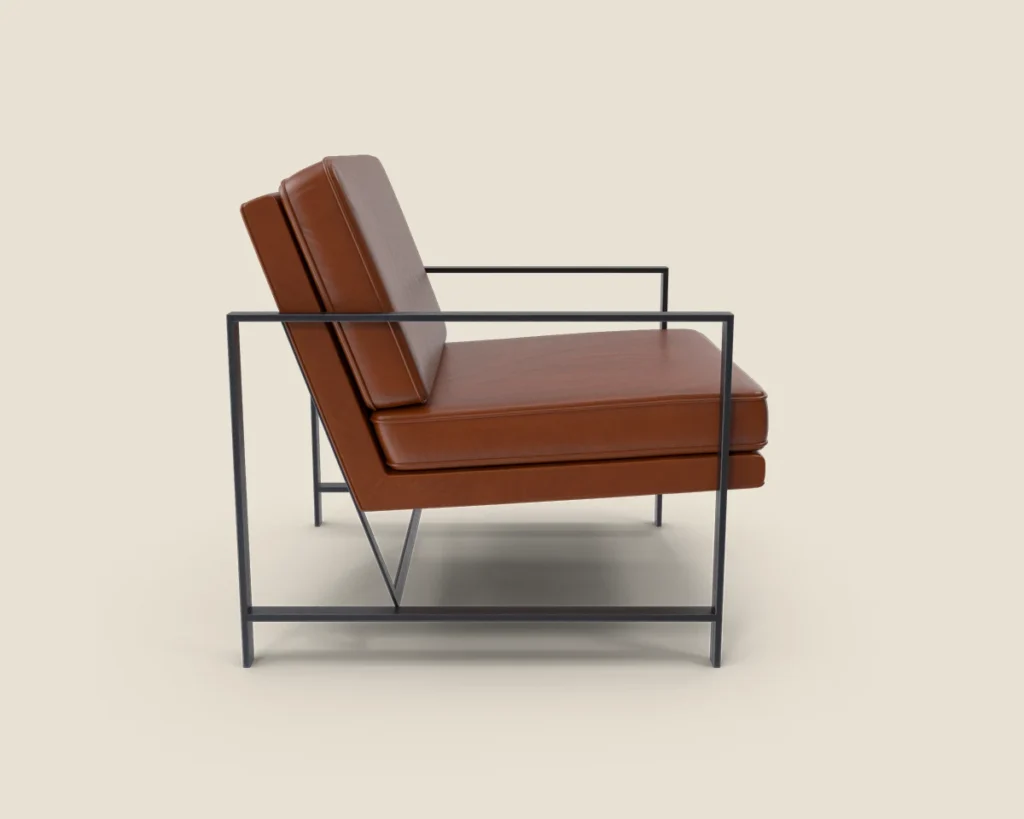 A stylish and comfortable lounge chair with a sleek metal frame and premium leather upholstery. Ideal for modern spaces