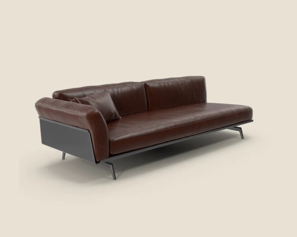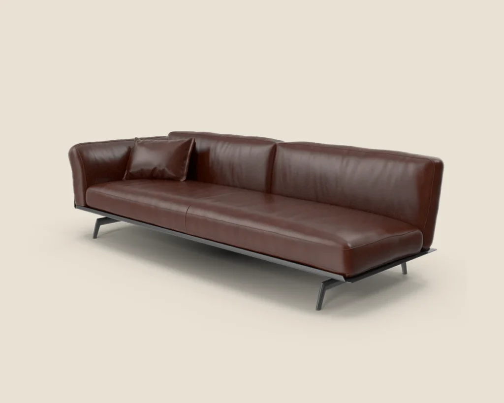 The Linear Sofa offers modern elegance with its sleek design, premium leather upholstery, and minimalist metal legs, making it a perfect fit for any contemporary space.
