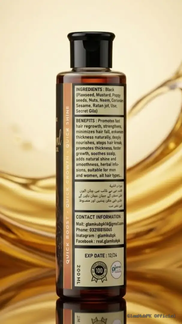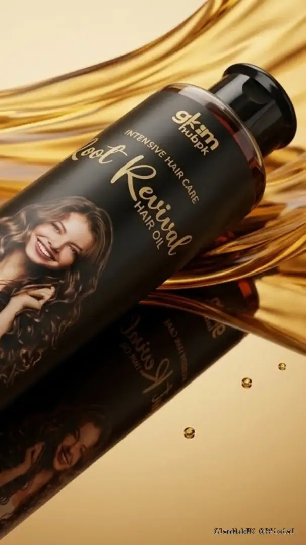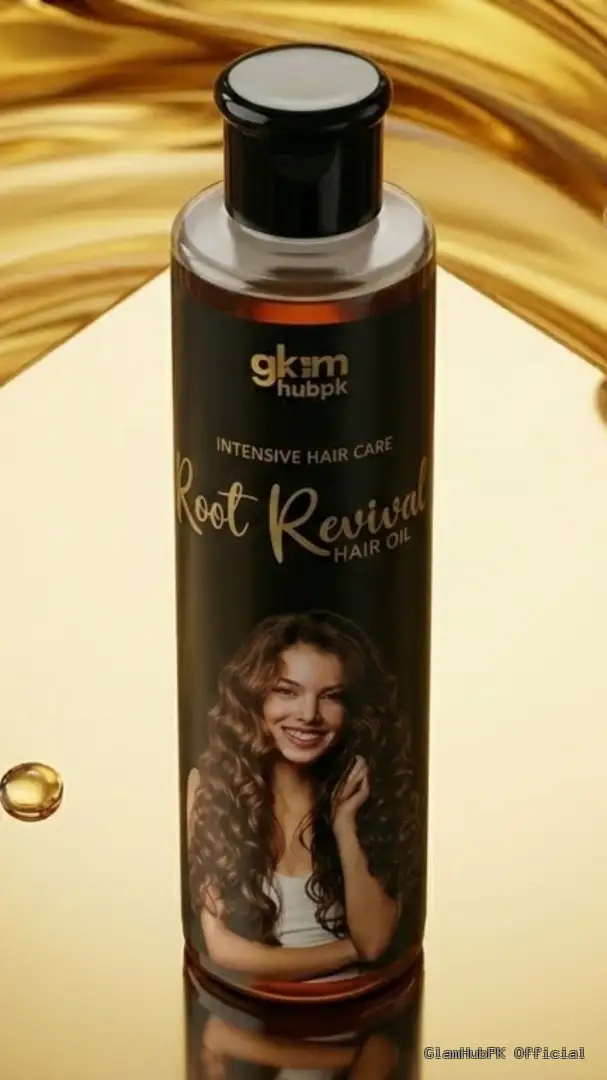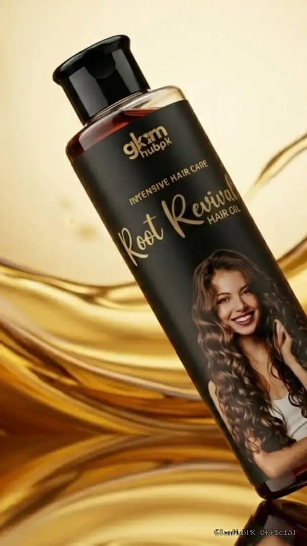 GlamHubPK Root Revival Hair Oil is a premium herbal hair oil made with natural ingredients designed to strengthen hair roots, prevent breakage, and stimulate hair growth naturally.