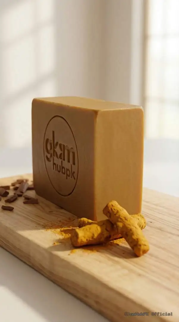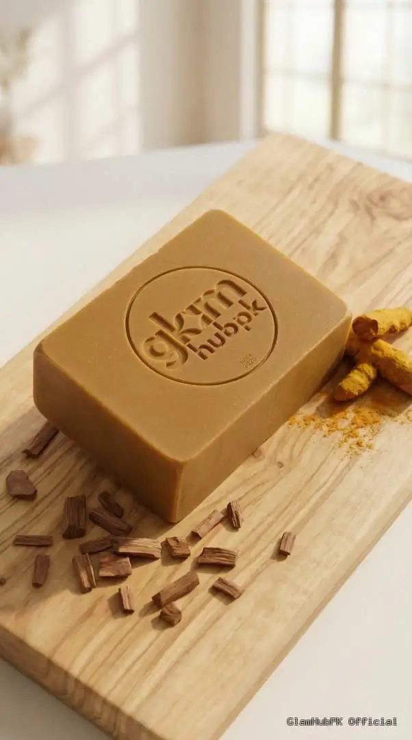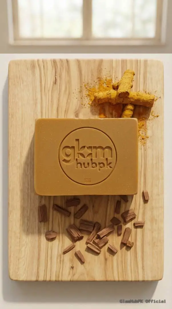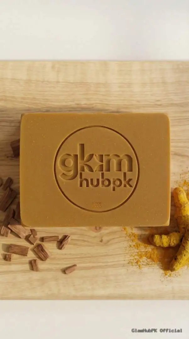 GlamHubPK Turmeric Sandal Soap is a premium herbal and organic soap formulated with natural turmeric and sandalwood extracts to enhance skin brightness, reduce acne, and protect skin from blemishes.